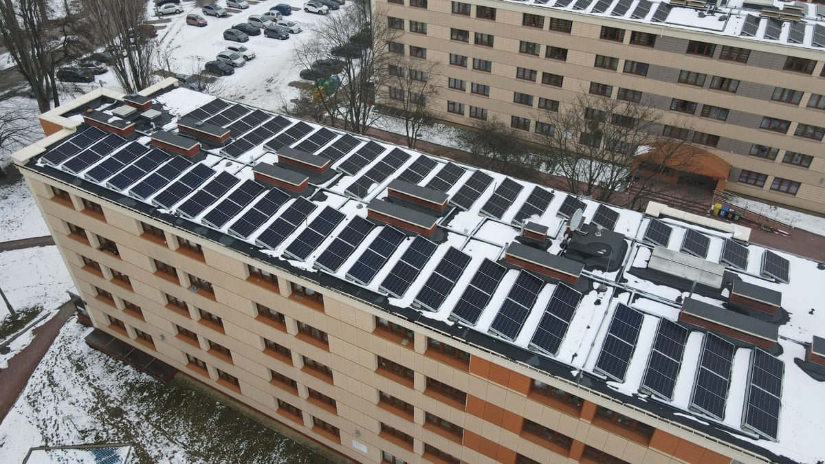 Na potrzeby Domów Studenckich zamontowaliśmy 6 instalacji fotowoltaicznych o łącznej mocy 220,32 kWp, złożonych z 459 szt modułów Chinaland SUN 480 co pozwala znacząco obniżyć rachunki za energię elektryczną