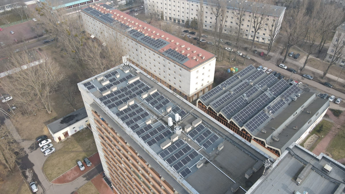 Na potrzeby Domów Studenckich oraz stołówki zamontowaliśmy 5 instalacji fotowoltaicznych o łącznej mocy 233,28 kWp, złożonych z 486 szt modułów Chinaland SUN 480 co pozwala znacząco obniżyć rachunki za energię elektryczną