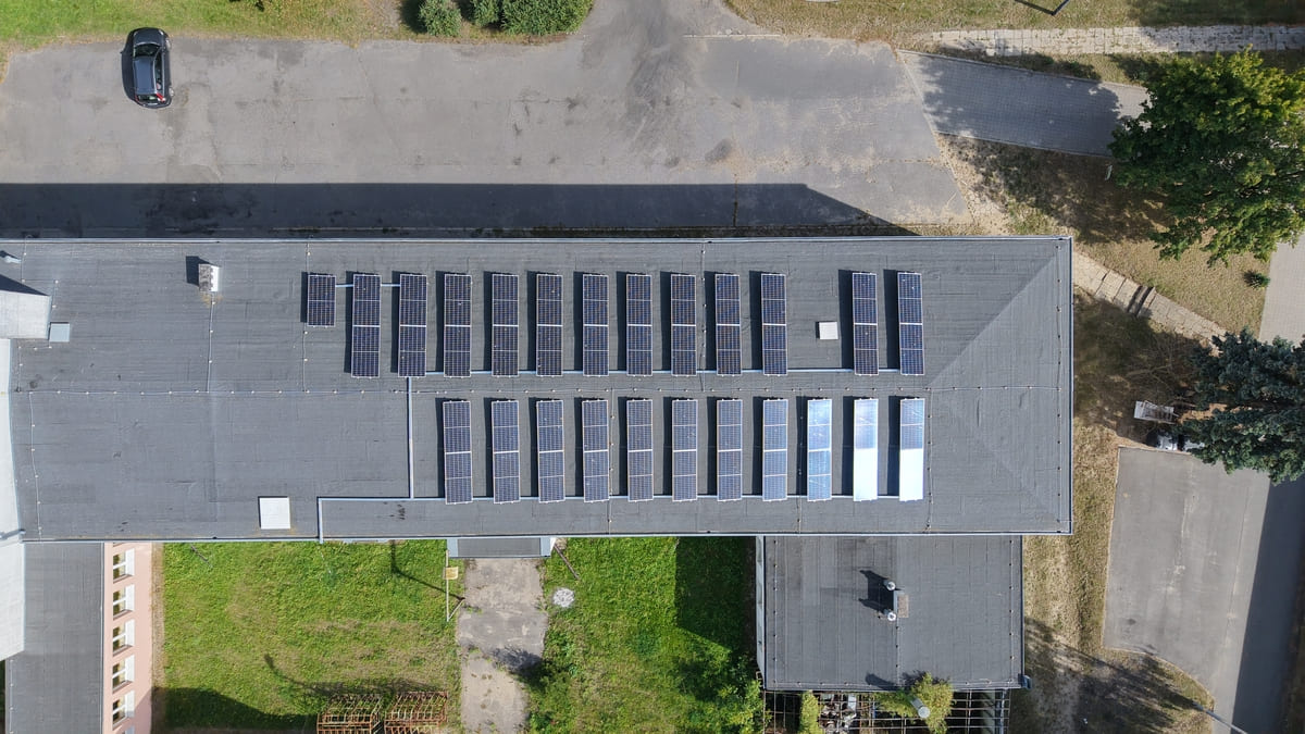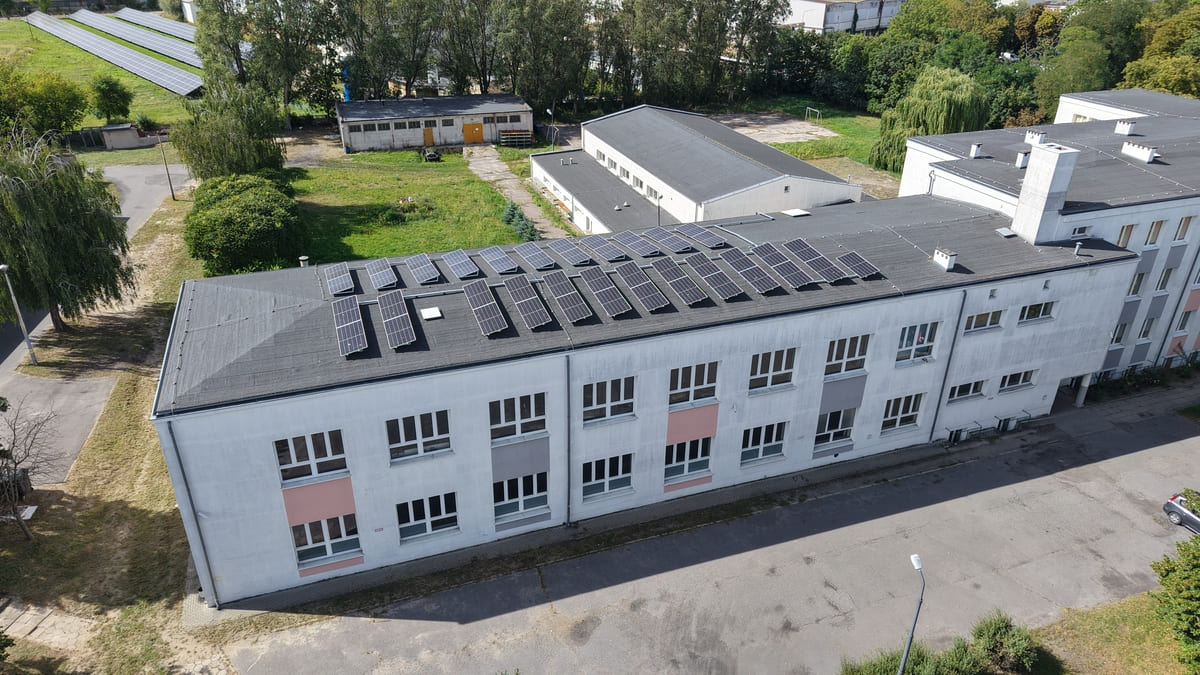 Na dachu budynku warsztatu Zespołu Szkół zamontowaliśmy instalację fotowoltaiczną o mocy 5,5 kWp, złożoną z 10 szt modułów Chinaland SUN 550. Dzięki temu placówka edukacyjna obniża koszty energii i promuje proekologiczne postawy wśród uczniów